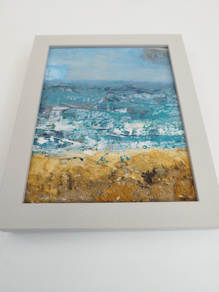 Medium: Acrylic, collage and sand on paper